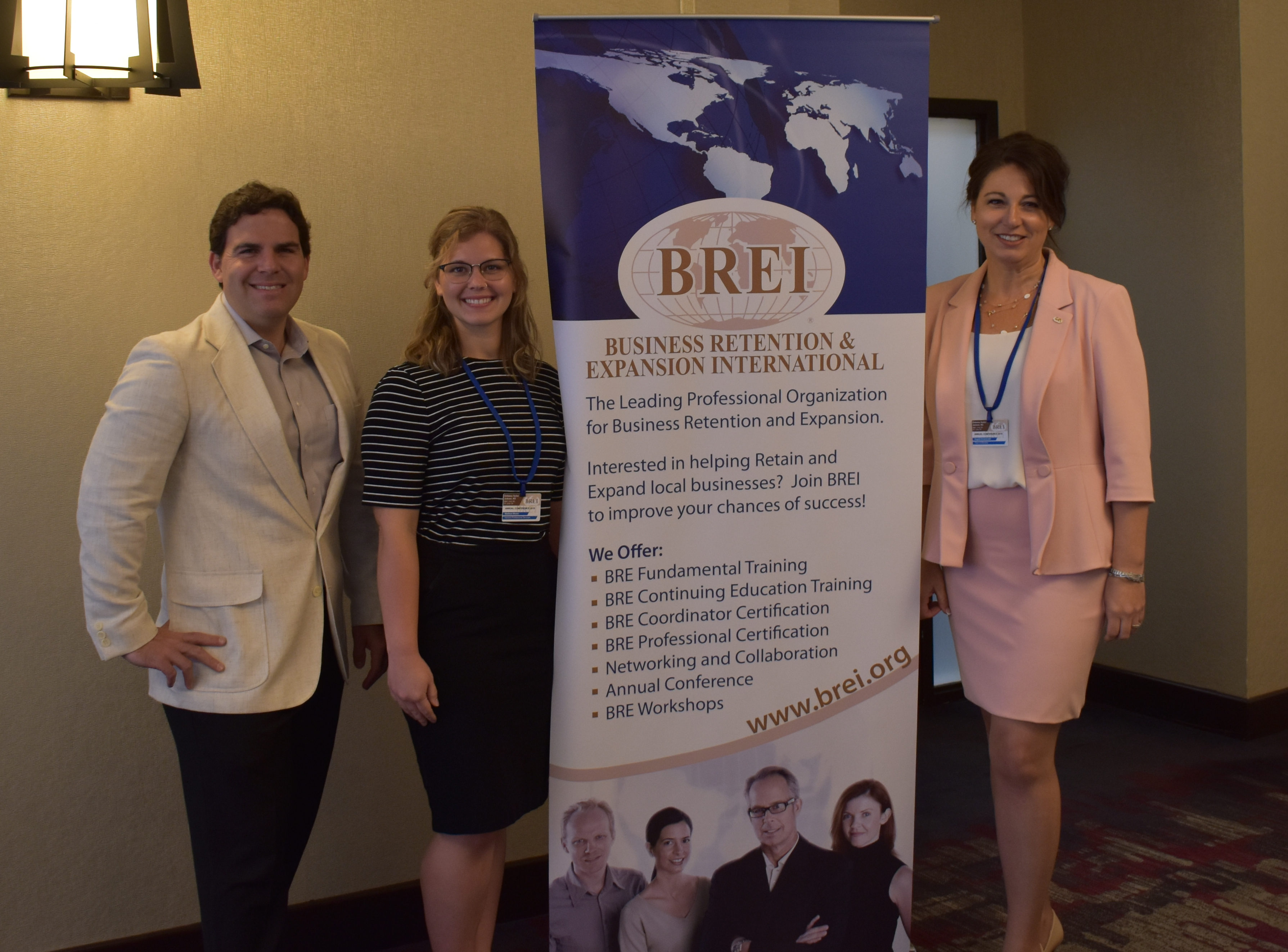 members posing next to BREI banner